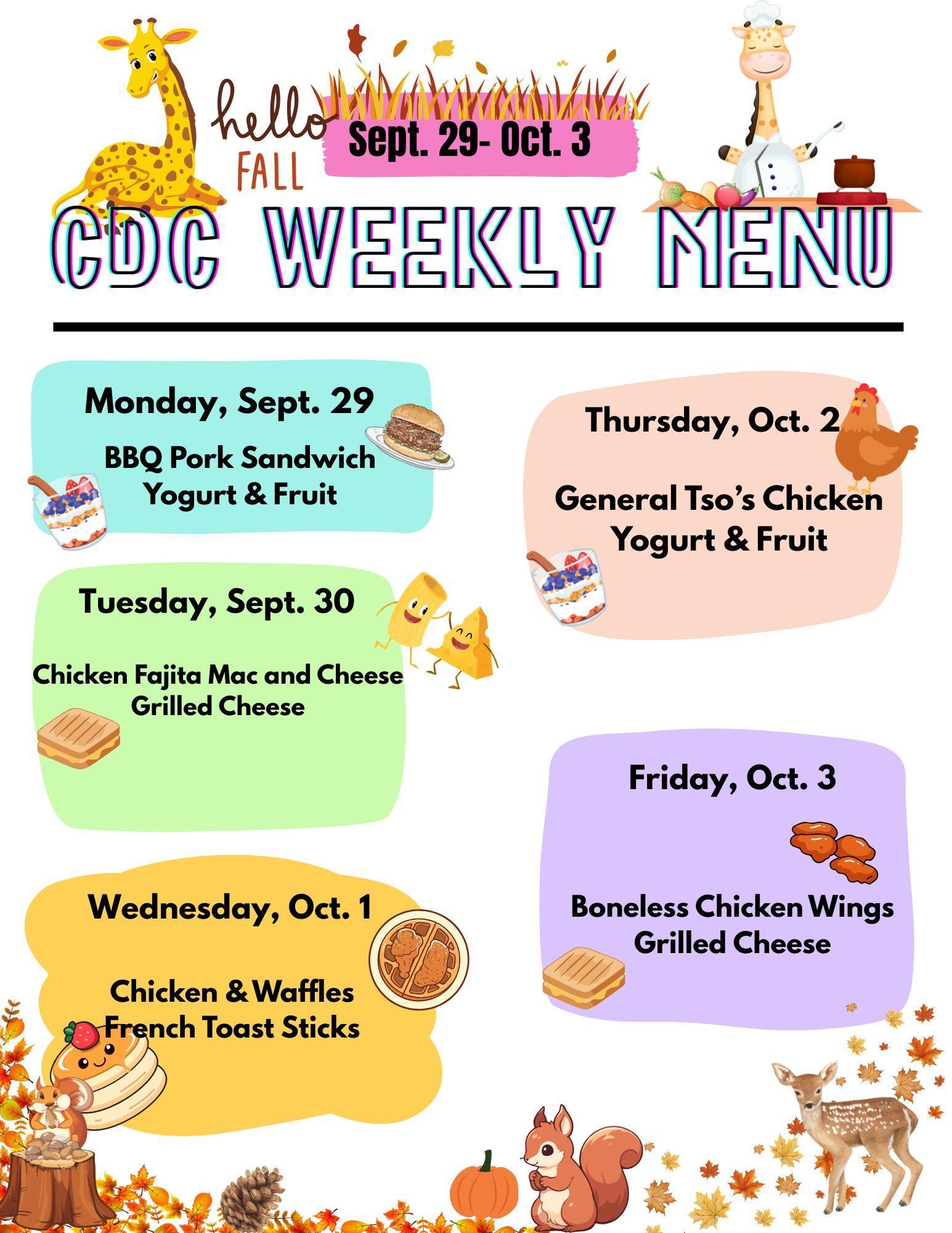 CDC Lunch Menu- Sept. 29 - Oct. 3