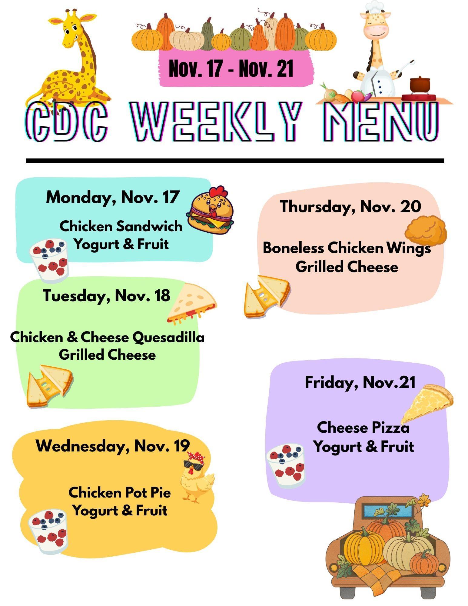 CDC Lunch Menu- Nov. 17 - Nov. 21