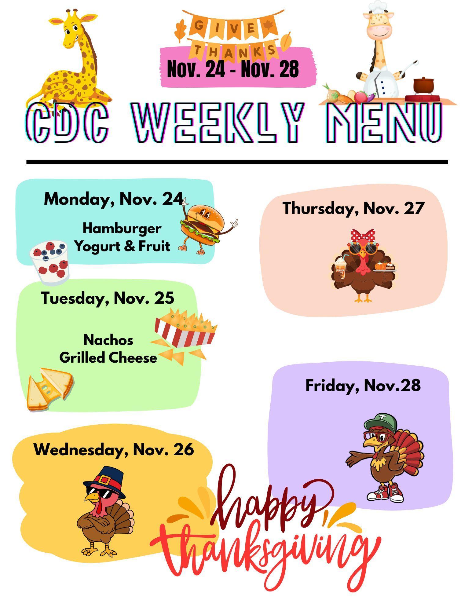 CDC Lunch Menu- Nov. 24 - Nov. 28
