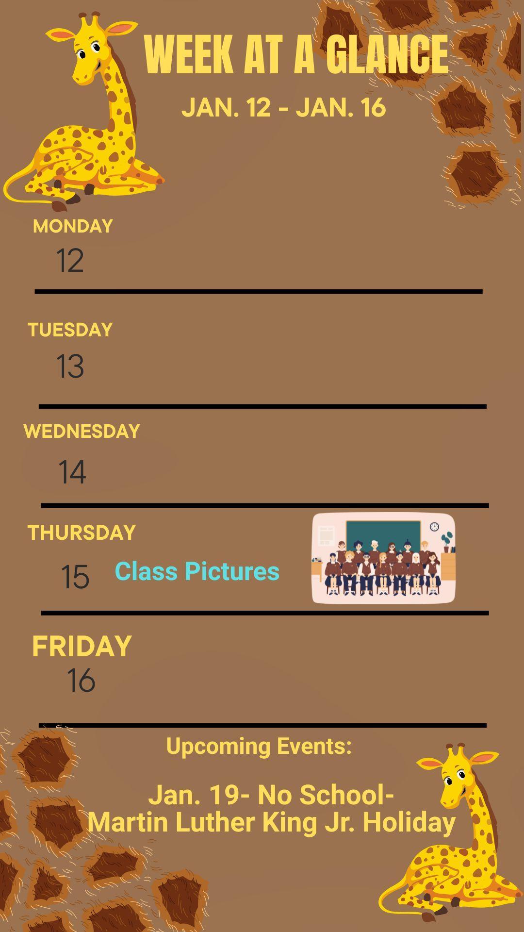 Week at a Glance- Jan. 12 - Jan. 16