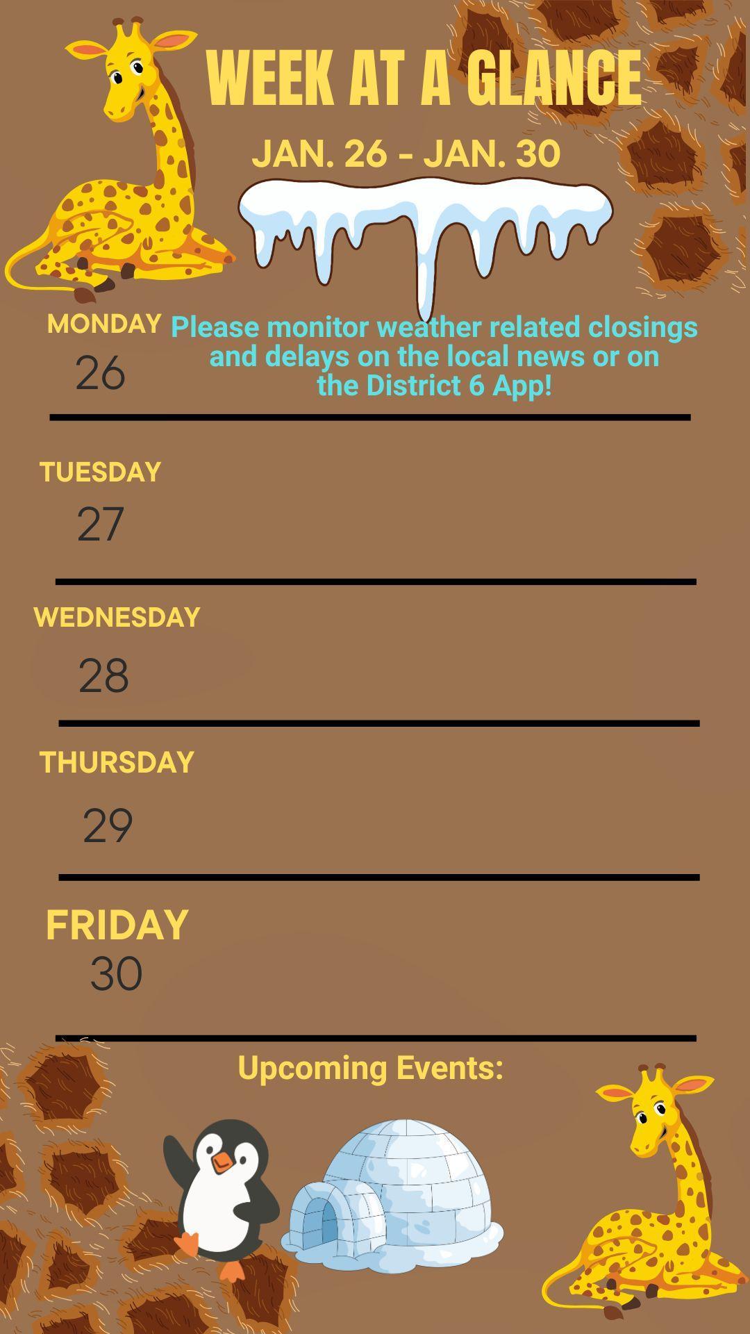 Week at a Glance- Jan. 26 - Jan. 30