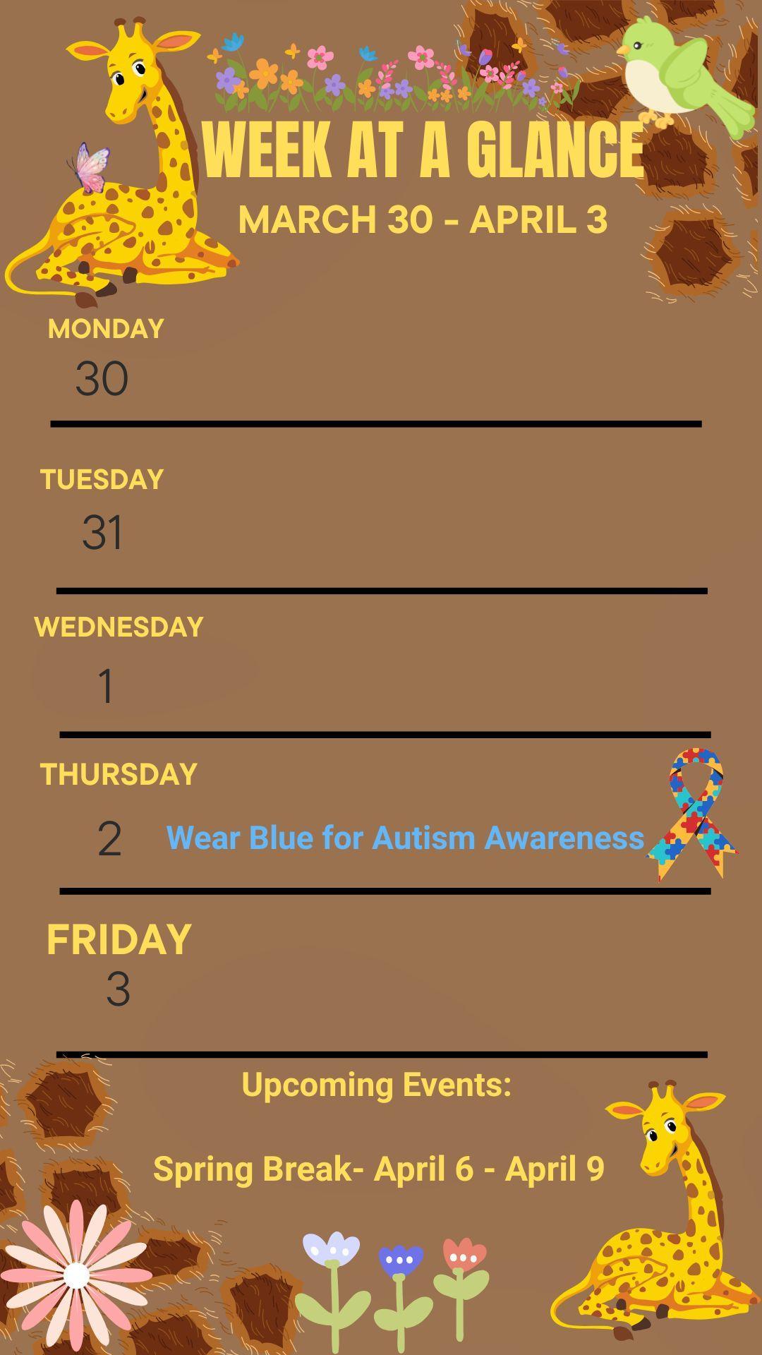 Week at Glance- March 30 - April 3