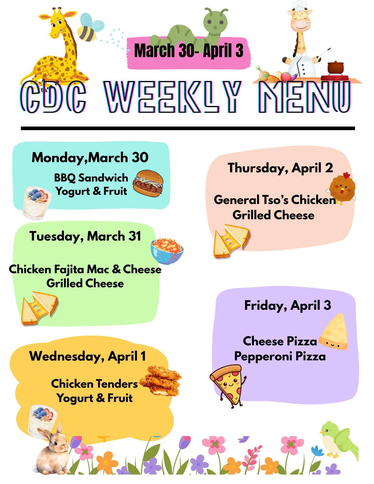 CDC Lunch Menu- March 30 - April 3